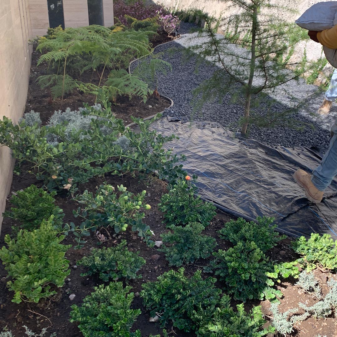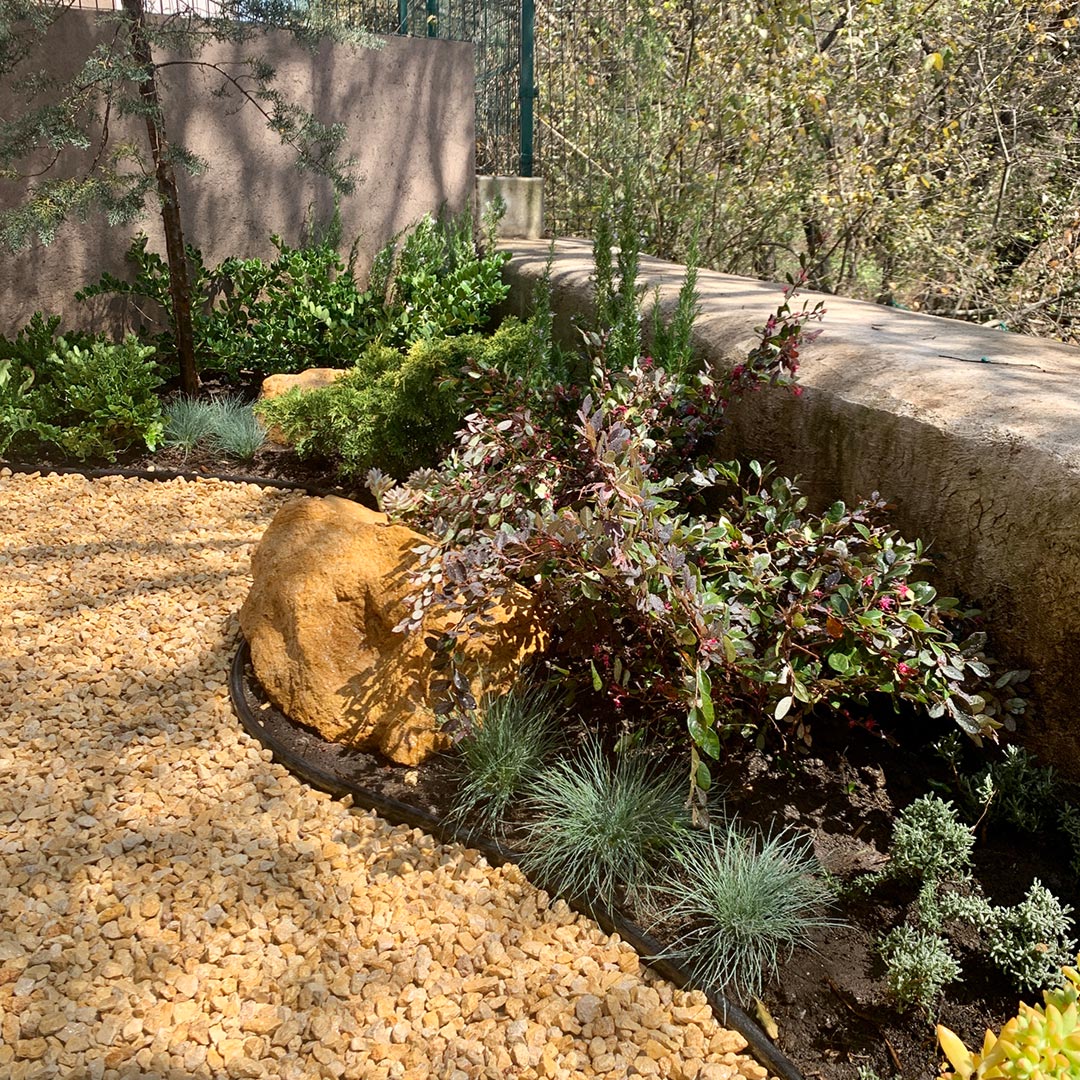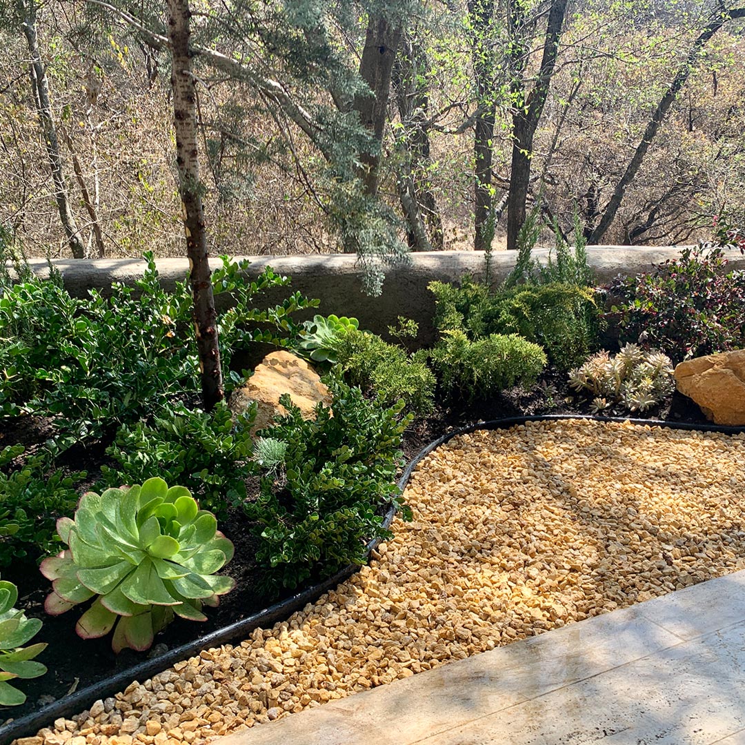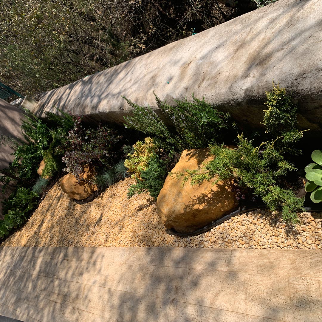 Con una paleta vegetal sugerida ideal para el entorno, adecuamos el estilo desértico / boscoso para poder resistir a los cambios de clima en la zona.